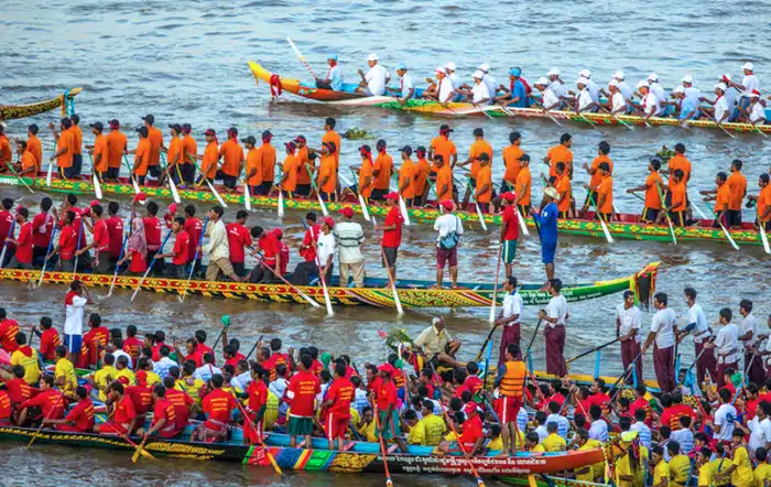 Phnom Penh devient le théâtre de spectaculaires courses de pirogues sur le fleuve, attirant des milliers de spectateurs À la tombée de la nuit, des bateaux illuminés défilent, accompagnés de concerts et de célébrations dans une ambiance...