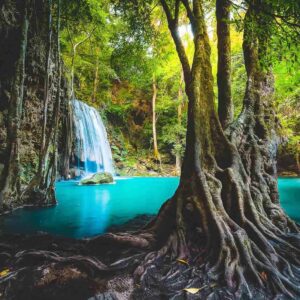 Nichée au cœur d’une jungle luxuriante, la cascade d’Erawan dévoile sept niveaux d’eaux turquoise où se mêlent fraîcheur et sérénité. Entre baignades et sentiers ombragés, chaque pas révèle un décor enchanteur.