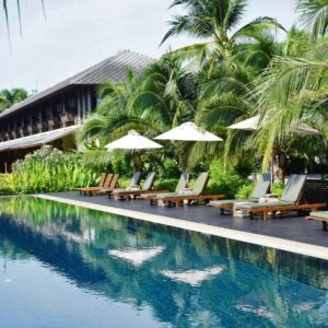 Niché en bord de rivière et entouré de jardins luxuriants, cet écrin de nature offre un cadre paisible parfait pour se ressourcer après vos aventures à Kanchanaburi, tout en profitant de ses espaces ouverts et de sa sérénité unique.