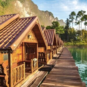 Une nuit suspendue sur les eaux émeraude du lac Cheow Lan, dans un bungalow flottant isolé. Réveil face aux montagnes embrumées, calme absolu et nature sauvage : une expérience inoubliable, pensée pour ceux qui cherchent l’exception.
