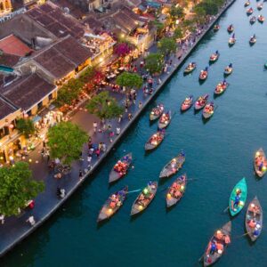 Hoi An, joyau intemporel, séduit par ses ruelles illuminées de lanternes, ses maisons de marchands préservées et son atmosphère paisible au bord de la rivière Thu Bon. Une ville où chaque coin respire charme et poésie.