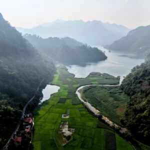 Depuis Bao Lac, la route serpente à travers petits marchés et villages traditionnels avant d’atteindre les paysages verdoyants de Ba Be. Ici, la nature se fait plus tropicale : forêts denses, grottes impressionnantes et un lac majestueux entouré de montagnes. Balade en barque, marche dans les rizières ou visite de Hua Ma viennent enrichir l’expérience. En fin de journée, installation dans un lodge au bord de l’eau, apéritif face au coucher du soleil et dîner familial complètent cette étape paisible, idéale pour savourer toute l’authenticité du nord vietnamien.