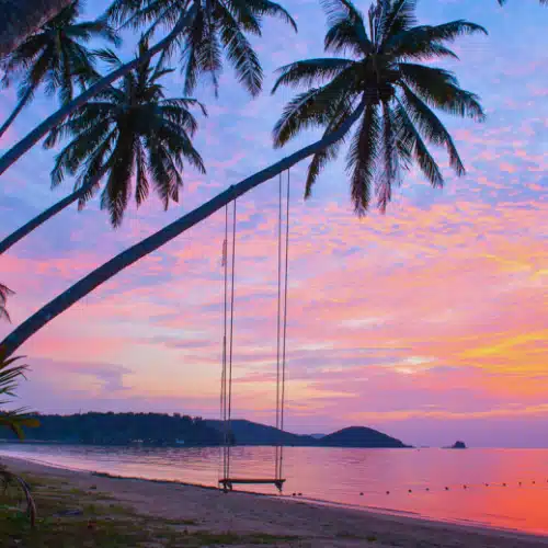 Îles préservées du golfe de Thaïlande, Koh Kood et Koh Mak offrent plages sauvages, cocotiers à perte de vue et atmosphère paisible. Loin du tourisme de masse, un cadre idéal pour se ressourcer.
